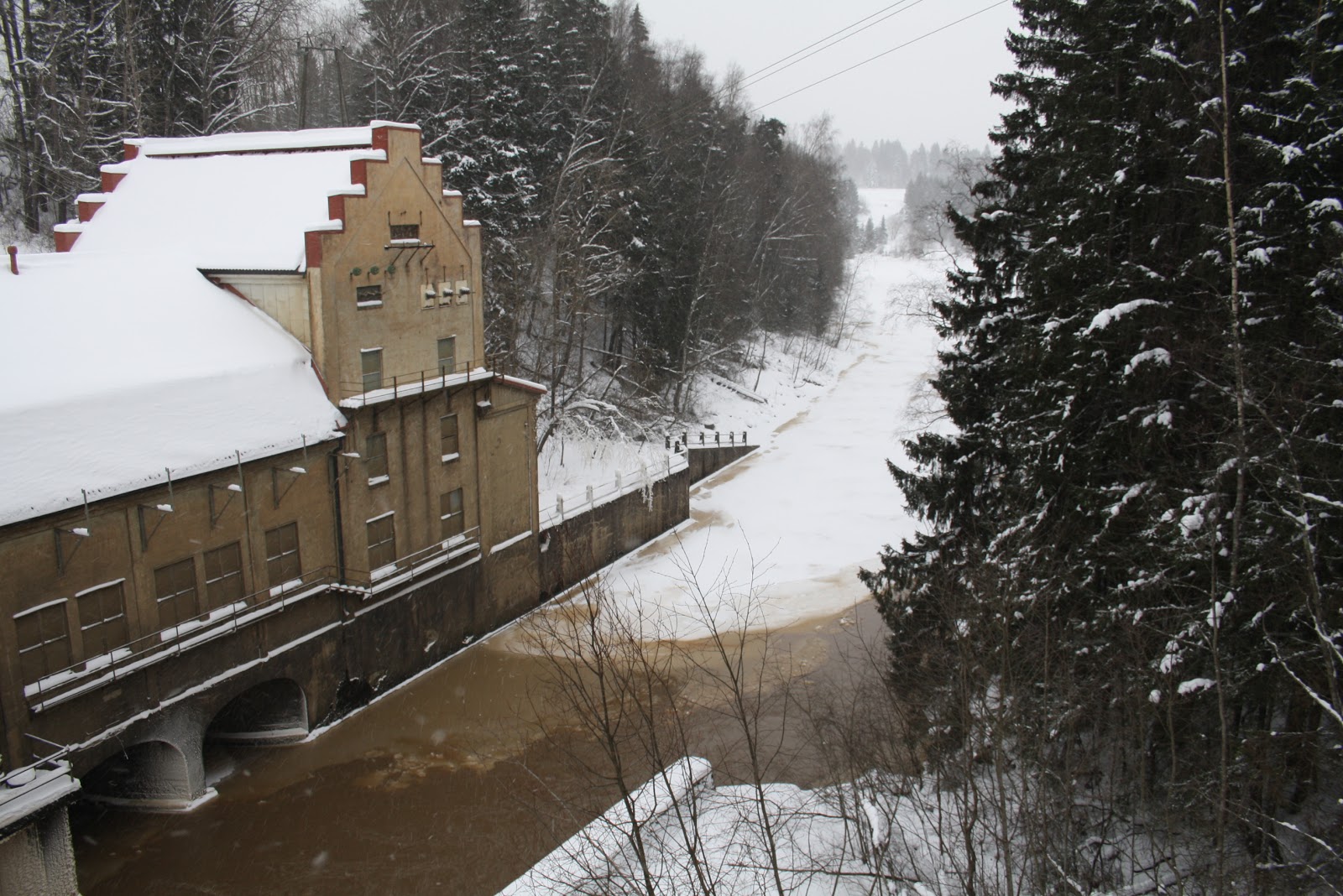 Juntolan voimalaitos tehtiin Paimionjokeen 1920-luvun alussa. Massiivinen rakennelma on komeannäköinen. Paremmalla ilmalla sitä olisi katsellut kauemminkin, mutta nyt pakkasessa ja viimassa katselunautinto ei ollut järin suuri. Vaikka sormet jäätyivät melkein heti, sain sentään otettua valokuvia jonkun verran.