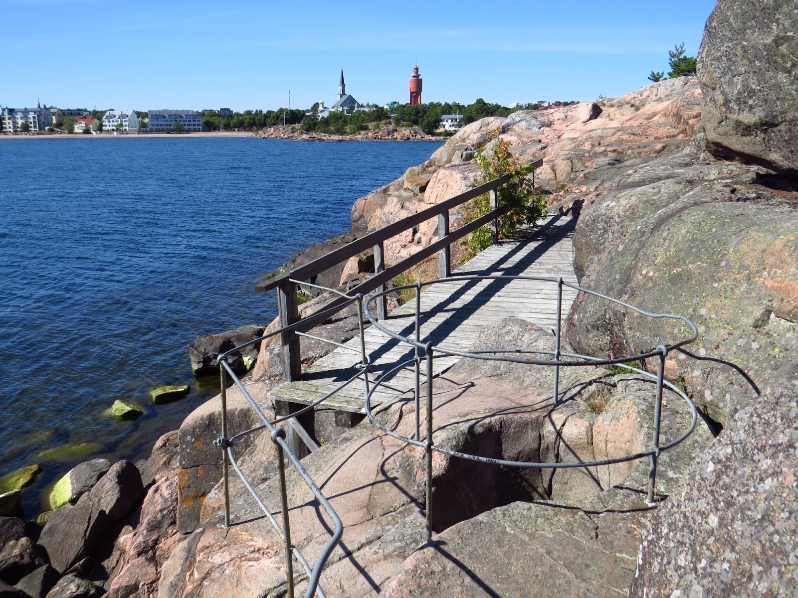 Hiidenkirnulta polku jatkui vielä jonkun matkaa ja johti kalliolle niemen kärkeen. Paikalla oli useita vanhoja bunkkereita. Aurinkoiset, merelliset maisemat hivelivät silmiä.