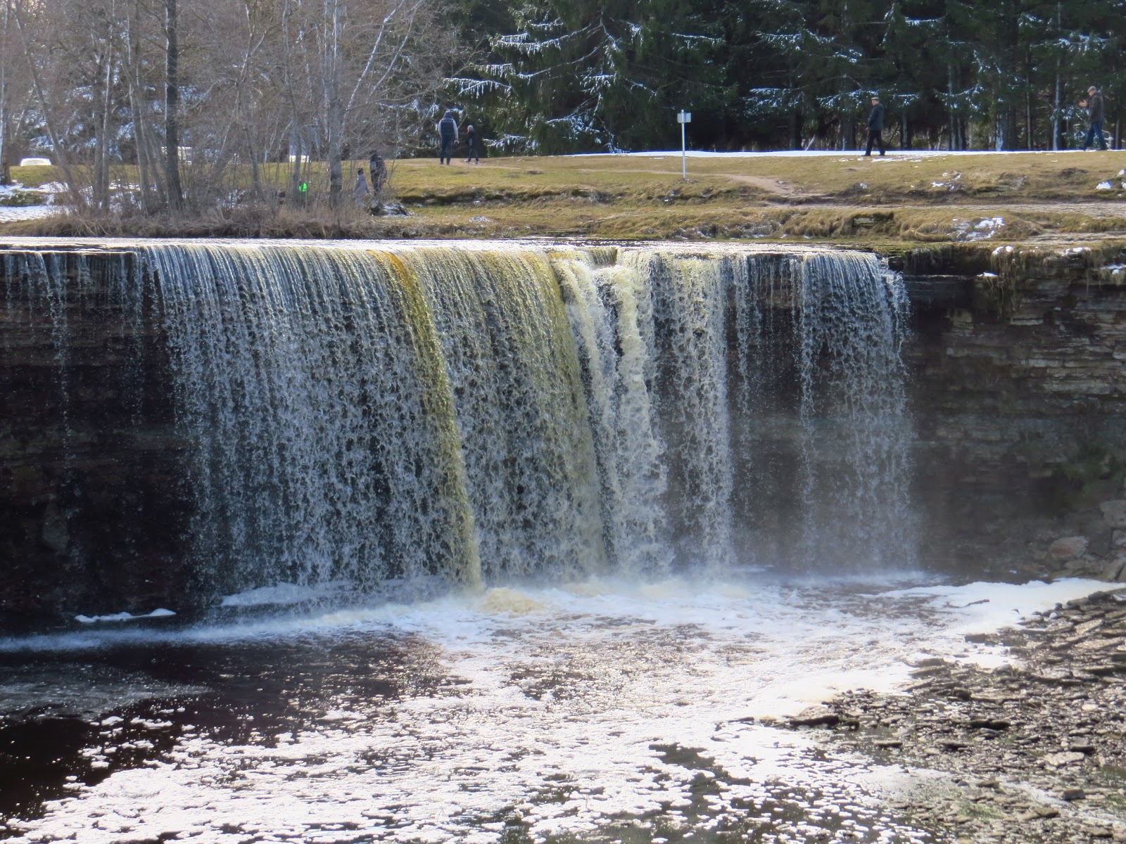 Jägalajoen alajuoksulla, merkillisen kalkkikivimuodostelman päältä laskeva putous oli vaikuttava näky. Alueella oli lisäksemme jonkun verran muitakin uteliaita ja myös joen toiselta puolelta löytyi parkkitilaa.